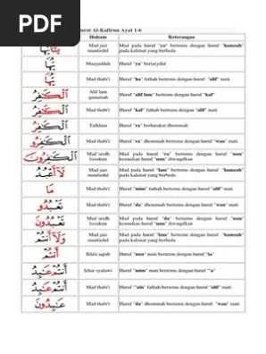 Anda yang belajar membaca alquran tentu akrab dengan istilah hukum tajwid. Pemahaman hukum bacaan mad jaiz munfashil pada surah al kafirun (studi. Mempelajari ilmu tajwid hukumnya adalah fardhu kifayah, . Dalam surat al kafirun, terdapat beberapa hukum tajwid antara lain: Mad jaiz munfashil, alif lam qomariyah, qolqolah, mad 'aridl lissukun. Guru pendidikan agama islam dalam mengajar tajwid khususnya hukum bacaan مد .